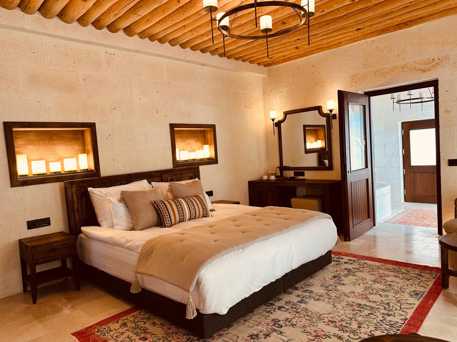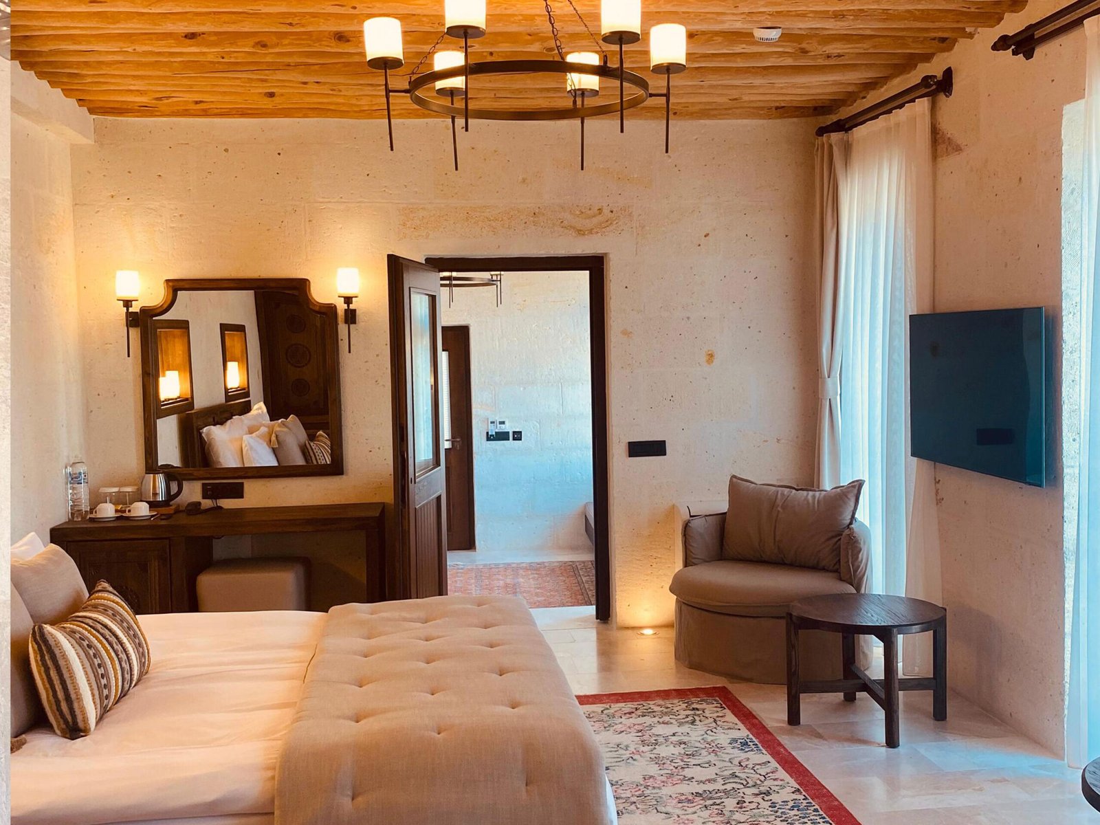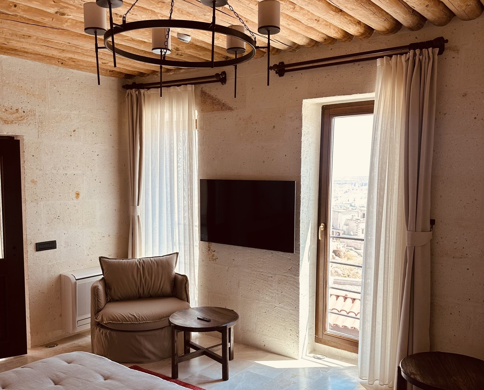 True to its name, Olimpia invites you above the clouds, to a privileged point overlooking the full splendor of Cappadocia. Representing the pinnacle of the Deluxe Suite with View category, this suite is not merely a place to stay, but an exclusive vantage point where the region’s unique landscape unfolds like a masterpiece before your eyes.