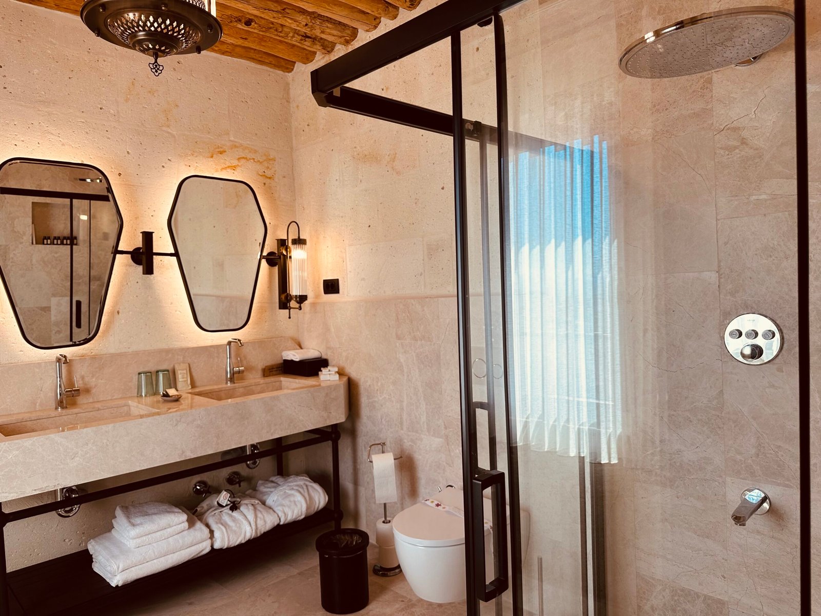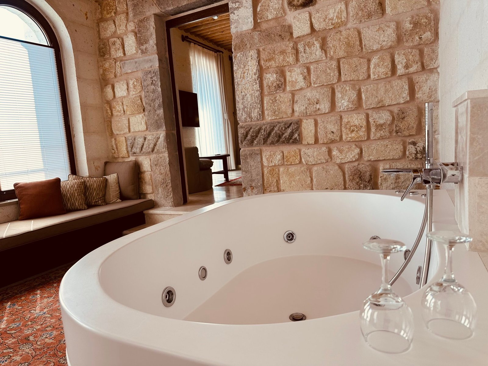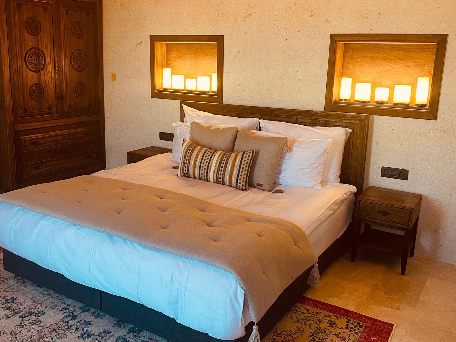 True to its name, Olimpia invites you above the clouds, to a privileged point overlooking the full splendor of Cappadocia. Representing the pinnacle of the Deluxe Suite with View category, this suite is not merely a place to stay, but an exclusive vantage point where the region’s unique landscape unfolds like a masterpiece before your eyes.